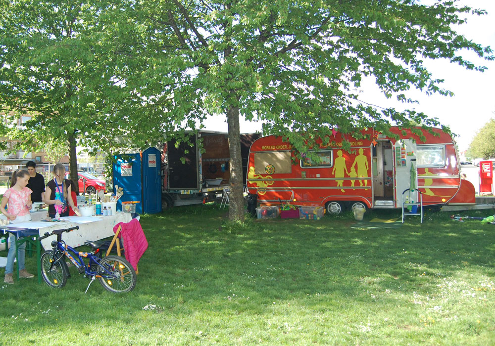 Begonnen hat 2010 alles mit dem mobilen Vorlaufprojekt "Mopos": offener Kinder- und Jugendarbeit in einem Wohnwagen.