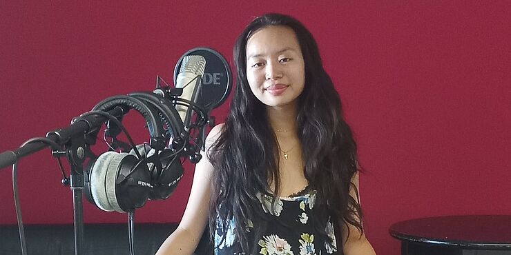 Tina Chau [7:31]: "Ich persönlich ziehe mich gerne relativ feminin an. Und auch ein bisschen freizügiger. Und (...) mir ist aufgefallen, wenn ich weiß, ich stehe mit Stand-Up auf der Bühne: ich zieh mich anders an. Vielleicht, weil ich irgendwo im Hinterkopf hab', ich will nicht sofort, sobald ich auf die Bühne gehe als super feminin wahrgenommen werden. Weil ich möchte (...) nicht, dass die Leute mich attraktiv finden, ich möchte, dass sie über mich lachen können oder mit mir lachen können. Und (...) mir kommt das kontraproduktiv vor, wenn ich das Gefühl hab: Ja, lachen sie jetzt, weil sie mich lustig finden oder lachen sie jetzt, weil sie mich attraktiv finden - als Frau."
