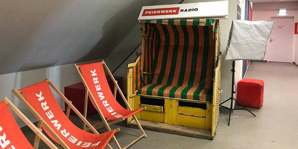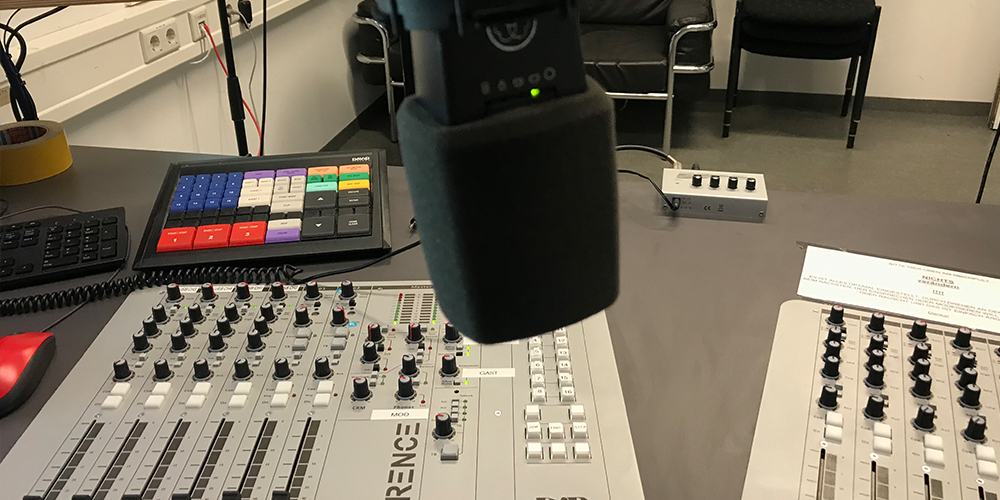 Das Sendestudio von Radio Feierwerk hat seinen Sitz in der Hansastraße und bietet viel Platz für interessante Studiogäste und diverse Moderator*innen. Sie stehen an unserem Pult und versorgen euch durch viele bunte Knöpfe und Lautstärkeregler mit guter Musik und spannenden Beiträgen. Bei all den technischen Reglern kann man sich kaum vorstellen, dass auch einige unserer Sendungen ganz automatisch, ohne eine Person im Studio, abgespielt werden. Denn manche Sendungen kommen als Vorproduktion von zuhause aus in euer Radio. Mehr Spaß macht es aber in jedem Fall, wenn ein*e Moderator*in live vor dem Mikro steht.