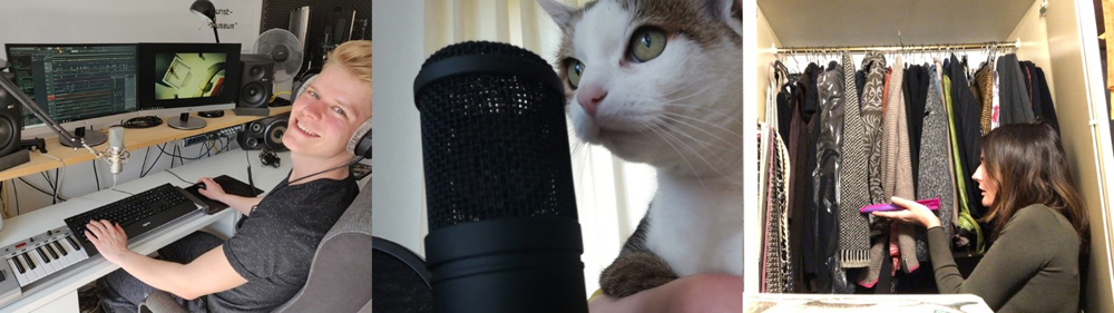 Zunächst mussten 35 in englischer Sprache bzw. mit englischen Untertiteln eingereichte Filme übersetzt und dann per "Voice-Over"-Technik mit Tonspuren in deutscher Sprache versehen werden. Bereits seit Februar engagierten sich Projektleiterin Patricia Bodensohn, die Praktikant*innen Patrick, Veronika, Victoria, Yannick, Vinzenz und viele ehrenamtliche Sprecher*innen für diese Mammutaufgabe. Durch die aktuelle Corona-Situation wurde daraus jedoch eine „Mission Impossible“. „Improvisieren ist ja bei dem Projekt nichts wirklich Neues, aber Corona stellte uns nochmal vor ganz besondere Herausforderungen. Keine StudioAufnahmen, kein Besucherverkehr, die Verlagerung der Helfer*innen ins Home-Studio, langsame oder überlastete Internet-Leitungen etc.“, berichtet Patricia Bodensohn. Nicht alle verfügten zuhause über eigenes, semi-professionelles Equipment. Viele Freiwillige schickten mit dem Smartphone produzierte Aufnahmen, ein offener Kleiderschrank diente als Geheimwaffe gegen zuviel Hall. Aufnahmegeräte wurden verschickt, Proberollen zum Checken der richtigen Tonqualität aufgenommen und jede Menge herumgebastelt. Ein anschauliches Bild der ungebrochenen Unterstützungsbereitschaft, des Optimismus und der Improvisationsfähigkeit des gesamten Teams vermittelt der kürzlich zum Projekt erschienene Beitrag auf dem Feierwerk Blog.