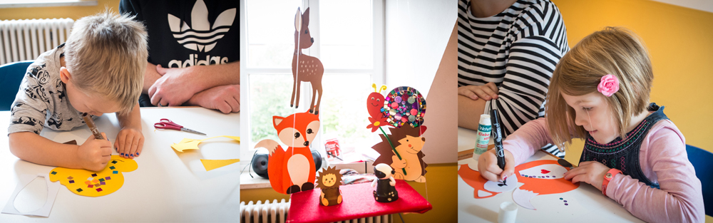 Um Halloween herum stehen dann gruselige Basteleien auf dem Programm und pünktlich zum Start in die Weihnachtszeit dreht sich alles um weihnachtlichen Glitzerkram und andere, kunterbunte Weihnachtsbasteleien. Außerdem hat entweder das Kinderatelier ab 4 Jahren oder die Werkstatt ab 6 Jahren geöffnet: Hier können die Kinder mit Peddigrohr flechten, Stoff- und Seidenmalen, mit Serviettentechnik gestalten, Porzellan malen und vieles mehr.