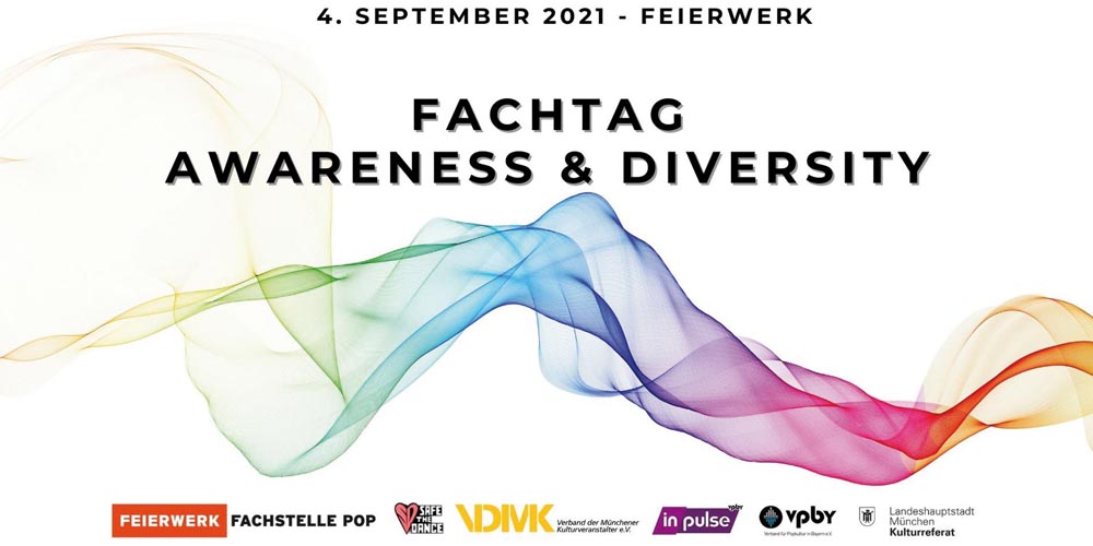 Der Fachtag „Awareness & Diversity“ findet am Samstag, den 4. September 2021 ab 9:30 Uhr in den Räumen des Feierwerks in der Hansastraße 39 statt und richtet sich an Veranstaltende, Venue-Mitarbeitende, Mitarbeitende der Jugendarbeit und alle, die sich für ein besseres Miteinander interessieren und aktiv daran arbeiten wollen. Ausklingen wird die Veranstaltung ab 19:30 Uhr mit der Möglichkeit zum Networking und informellen Austausch.