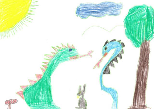 Geleitet wird das Projekt „Tanzende Drachen“ von den zwei Künstlerinnen Karin Fröhlich (bildende Künstlerin) und Luise Lochmann (Tänzerin). Es richtet sich an alle Kinder zwischen 6 und 12 Jahren, die gern kreativ sind und Spaß an Rhythmen und Bewegung haben. Dass die Wahl für dieses Projekt ausgerechnet auf das Thema Drachen fiel, ist natürlich nicht zufällig. Da diese Fabelwesen in Mythen verschiedenster Kulturen auftauchen, ist auch die Beschreibung ihres Äußeren und ihres Wesens mannigfaltig und bietet dadurch vielseitigste Möglichkeiten für eigene Interpretationen der Kinder. Während des fünftägigen Projekts sprechen die Teilnehmer*innen über ihre ganz persönlichen Vorstellungen eines Drachen, wie er aussieht, aber auch wie er sich bewegt und welche Laute er macht. Diese Geschichten dienen dann als Grundlage, um die Drachen zu zeichnen oder aus Knetmasse zu formen, dann erst entstehen anhand dieser Vorlagen zwei riesige Drachen aus Draht und Pappmaché. Wie sich diese Fabelwesen bewegen sollen, auch das definieren die Kinder selbst. Mithilfe von rhythmischen Klängen bewegen sie sich frei und entdecken so Bewegungsmuster zu verschiedenen Eigenschaften und Emotionen der Tiere.