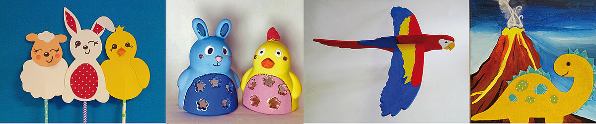 „Da fliegt was in der Luft!“, heißt es in der zweiten Ferienwoche. Kinder ab vier Jahren werden staunen, was alles beim Ostferienprogramm im Feierwerk Dschungelpalast Flügel bekommt. Zur Auswahl stehen Bastelmotive wie fliegende Hunde und Elefanten, Flugsaurier, kleine Raketen, Flugzeuge und farbenfrohe Windspiele.