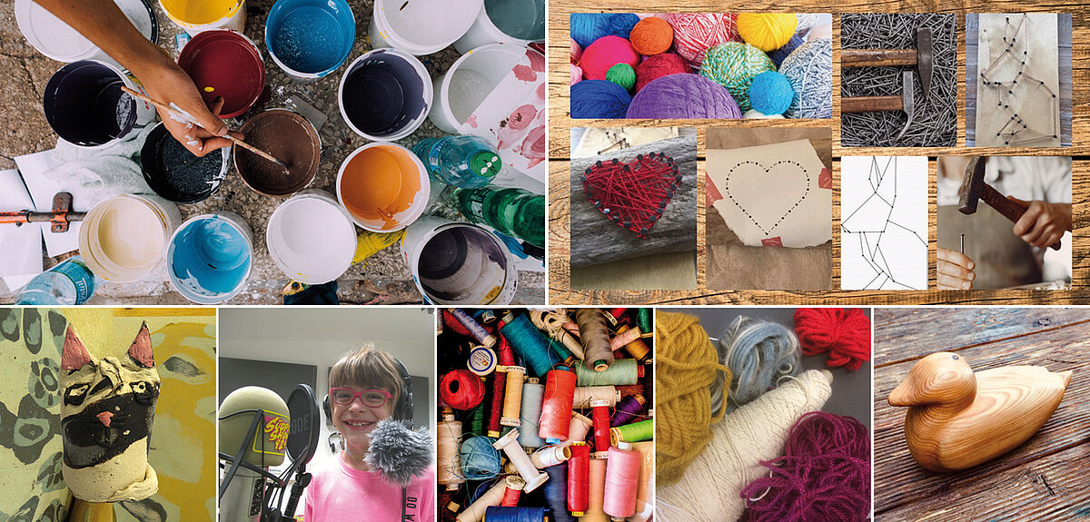 Kinder ab acht Jahren zaubern mit Tonfarben atemberaubende Muster und Kunstwerke. Sie lernen Wolle herzustellen und zu verarbeiten oder den Umgang mit der Nähmaschine. In Begleitung Erwachsener werden sie im Workshop „Tierwelten-Schnitzerei“ sicher im Umgang mit Dekupiersägen, Schnitzeisen, Raspeln usw. In drei Intensivkursen können Kinder ab acht bzw. zehn Jahren ins Radiomachen hineinschnuppern. „Spray mal wieder“ oder „Mal mal wieder“, heißt es für Jugendliche ab 12 Jahren. Mit dem Workshop „Nimm den Faden selbst in die Hand – String Art“ steht ein neues, cooles Angebot im Programm.
