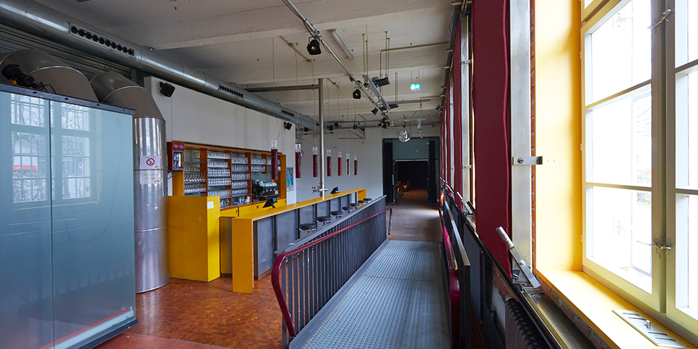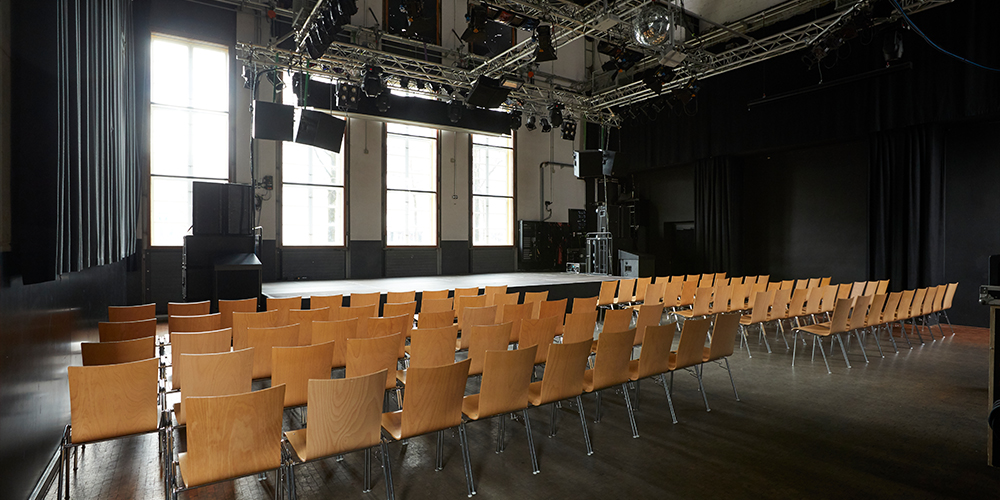 In die lichte Höhe von acht Metern sind diverse Leinwände (optionale Nutzung) und Traversen installiert, die sich perfekt in den Gesamtlook der Halle einfügen und zugleich ihre Vielseitigkeit ausmachen. Die perfekte Licht- und Tonausstattung ermöglicht es, sehr unterschiedliche Atmosphären zu schaffen und mit bestechender Raumakustik jeden Event zum Highlight zu machen. Da es auch keine fest installierten Bars gibt, ist auch die räumliche Aufteilung für Ihre Veranstaltung frei gestaltbar.